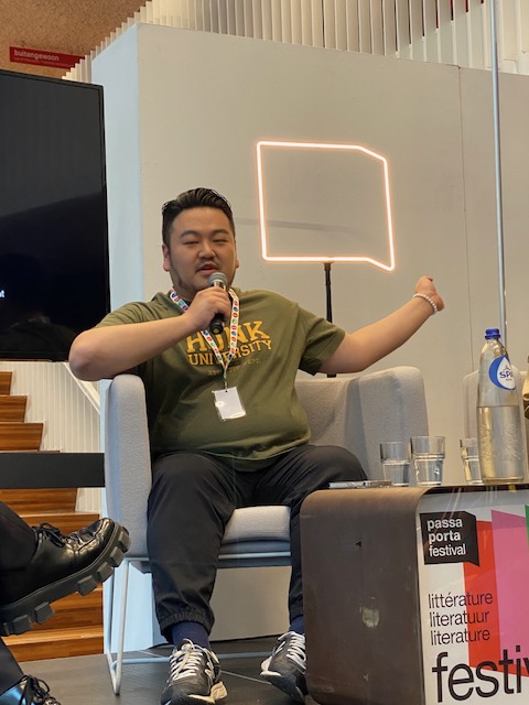 Moderator Angelo Tijssens wanted to discuss three topics with his guest: queerness, being Korean and being a writer.