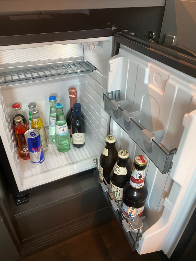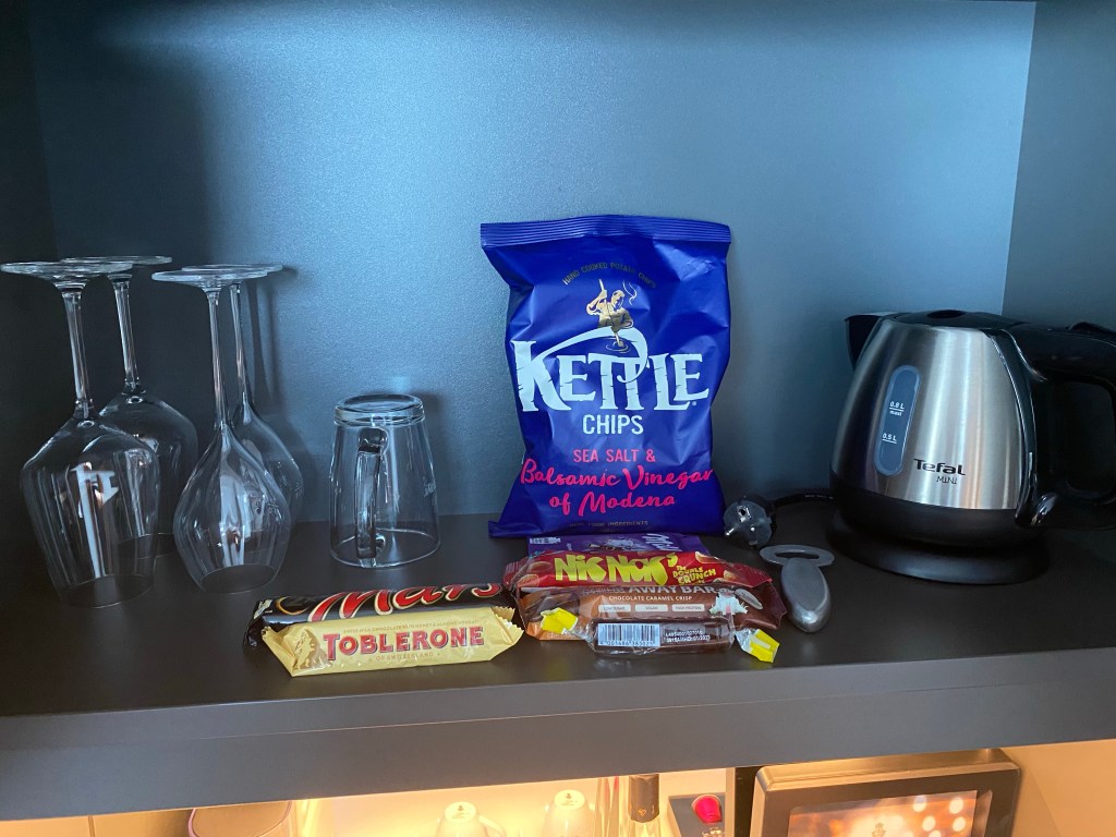 A complimentary bottle of sparkling water as well as proper tea and coffee making facilities where provided. A fully stocked minibar was also available, but of course it had to be paid.