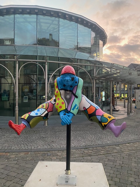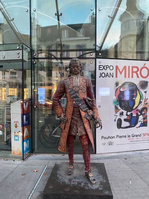 We also spotted a few Pierrot sculptures. Pierrot, is the symbol of Spa drinking water. In 1923, a competition was launched to create a new logo for the brand. The French artist Jean d’Ylen won with this design.