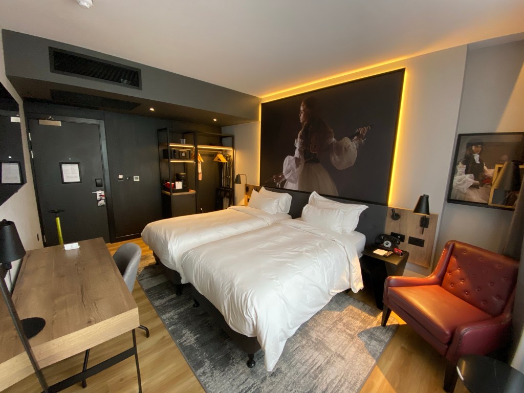 The hotel also perfectly manages to combine the classic style of the building with the modern and vibrant styling of Radisson Red whilst also including some references to Liverpool (like the red rubmarine in the lobby, a reference to the Beatles song of the ‘Yellow Submarine‘ but colouring it in the red of the brand). It feels very modern and playful yet stylish.
