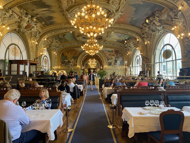The restaurant was originally created for the Exposition Universelle (1900). Each ornate dining room is themed to represent cities and regions of France and they are decorated with 41 paintings by some of the most popular artists of that time.
