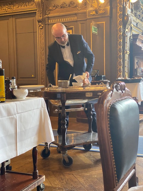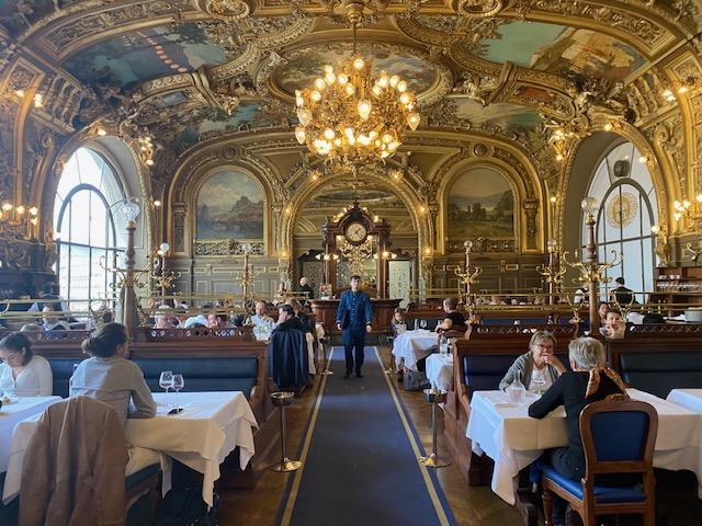 Eating at Le Train Bleu was a lovely way to start our vacation. It is also an opportunity to have some traditional French cuisine in a beautiful setting. The waiters are wearing black suits, white shirts, a bow tie and white gloves. This enhances the ‘olden days’ vibes Le Train Bleu aspires.