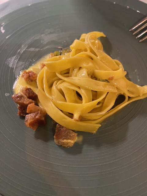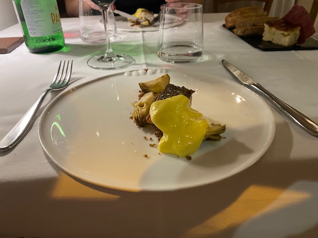 After this swift visit which I am not reporting on separately we had a swim at the hotel. For dinner, we went to the pub-like Osteria da Marino, sporting rugby memorabilia. We ate regional dishes, served by inked Italian twinks.