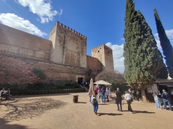 The Alcazaba, the fortress, is one of the oldest parts of the Alhambra. Muhammed I and Muhammed II lived in the Alcazaba when the palaces were still being built. But later on the Alcazaba was only used for military purposes. Three big towers were used to spot enemies and to defend the Alhambra.