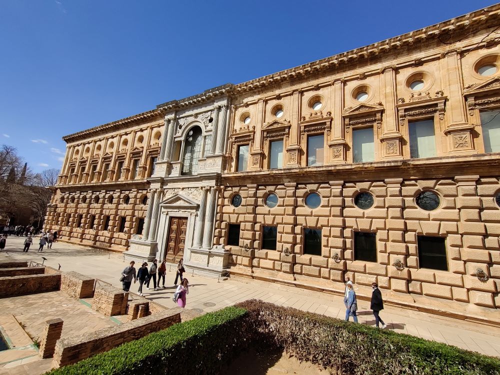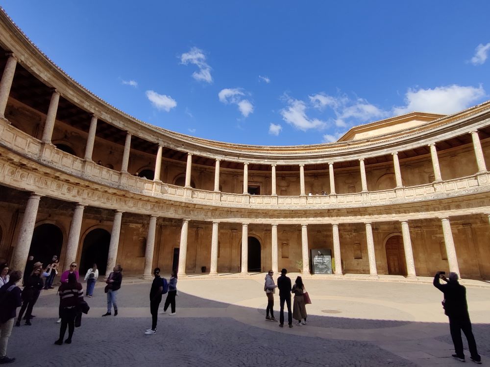 The Palace of Charles V remains incomplete. If you go inside of the inner circular patio you can see this clearly. There is a beautiful Doric colonnade of conglomerate stone but no other decoration.