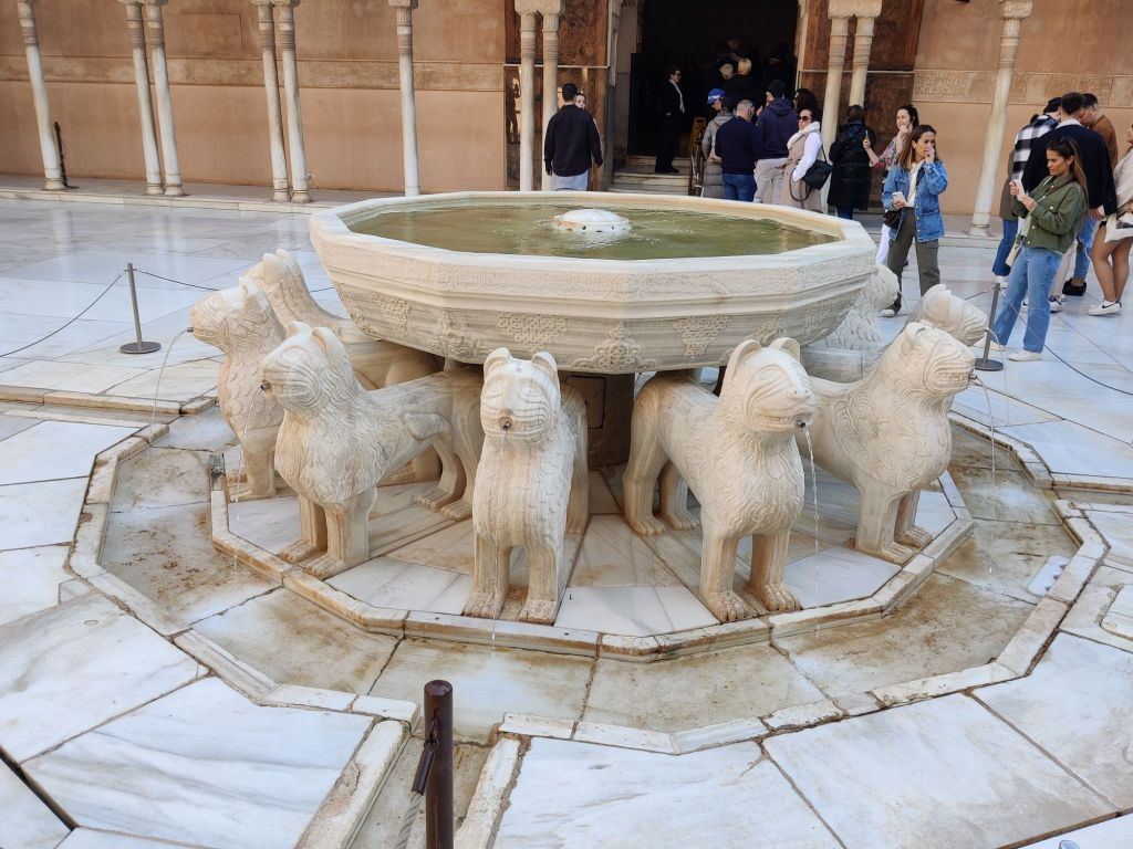 The Palace of the Lions is considered the most beautiful of all the palaces you can visit at the Alhambra. It was commissioned by sultan Muhammed V. Its construction began in 1362 and it was finished later that century. The marble fountain with twelve sculpted lions in the main courtyard is the picture to take. Being seen here in presence of the lions is the visual prove you have visited the Alhambra. The symmetries, but also the muqarnas vaults, the ornamented vaulting typical for Islamic architecture, make this palace stand out.
