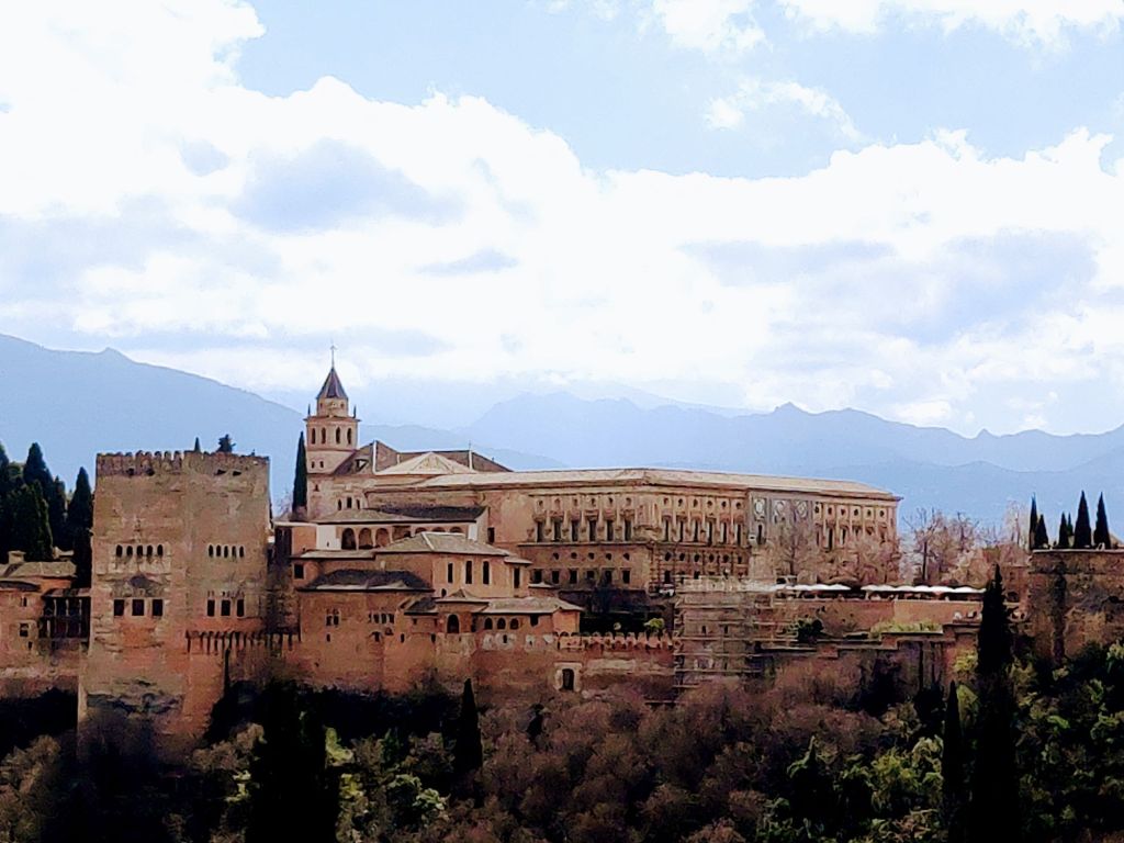 By 1250 the Emirate was in fact a vassal to the rising Crown of Castile. Nevertheless for over two centuries Granada prospered culturally and economically. This allowed the building of the Alhambra. The complex is built on a hill, an outcrop of the mountain range Sierra Nevada. If it is not too cloudy you can enjoy a view of the mountains from the Alhambra.