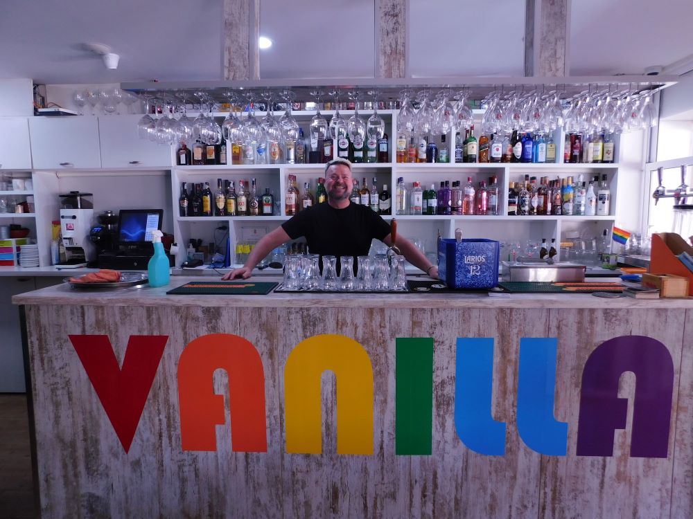 A nice bar for daytime drinks is Vanilla. Owner and bartender Jamie is an absolute gem. He can turn a sour face into a smiling face in the blink of an eye. His business is at the Plaza de la Nogalera. He was really the first person to open a gay bar in the central square of town and others have followed his example.