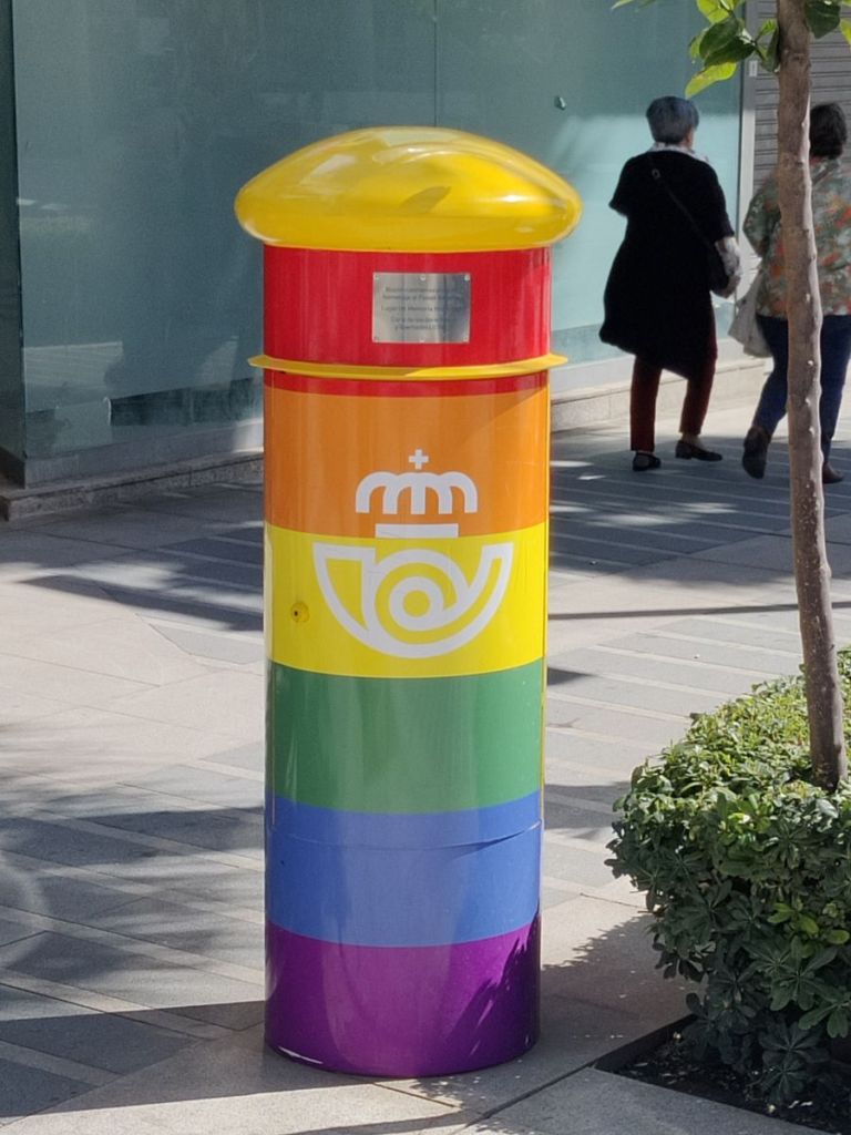You have a rainbow coloured mailbox of Correos, the state owned company that is responsible for providing postal service in Spain. There is the big rainbow flag in the center square and rainbow pedestrian crossings. Somewhere over the rainbow in Torremolinos there are much more rainbows!