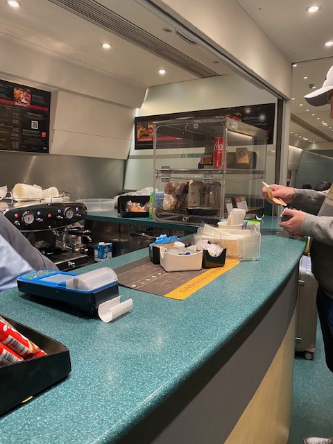 The ETR 610 has two classes: first and second. First has a 2+1 configuration. Service is not included in the price but available. There are Swiss and European power outlets.