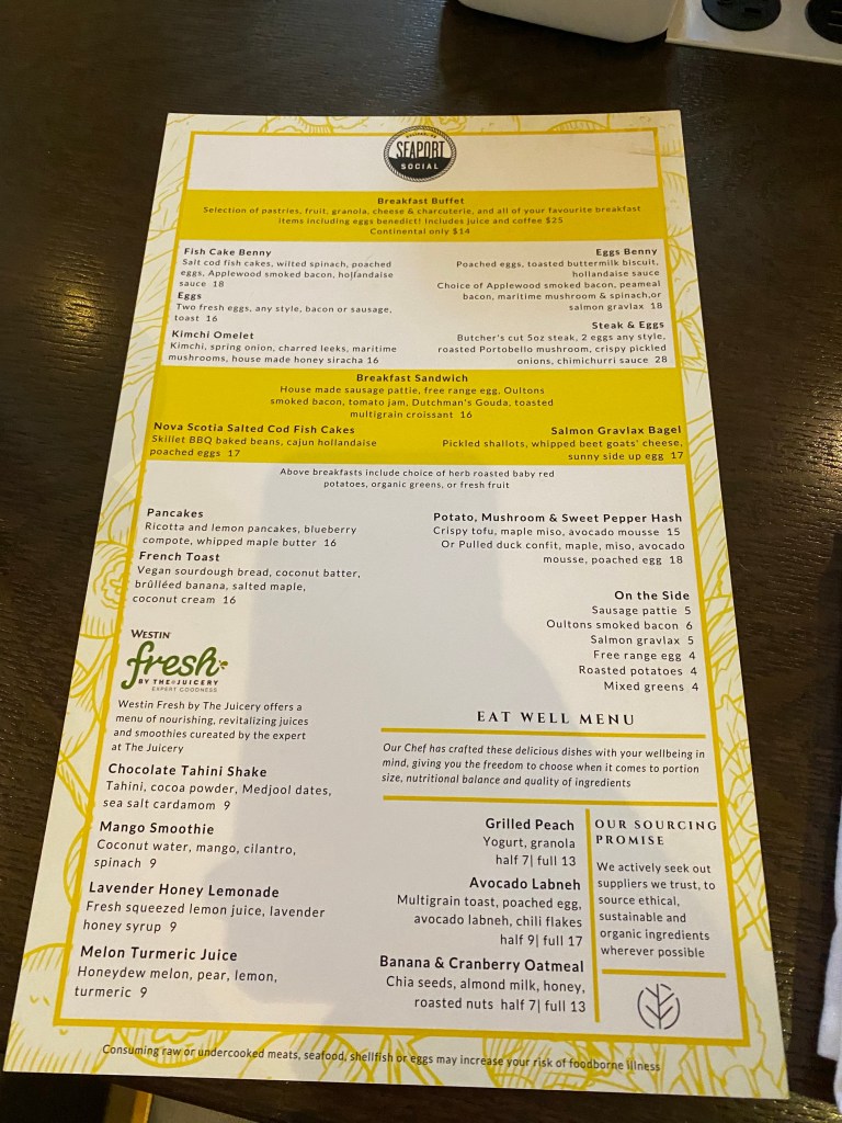 In the morning we made use of the breakfast in the Social Club, the hotel’s restaurant in the lobby. You either had the choice between an a la carte menu or the buffet. The first morning we ordered ala carte with some nice fish cakes eggs benedict while the second morning we made us of the buffet. For its price it was surprisingly extensive with even an eggs or waffles made to order station. You also had the usual offering of hot and cold breakfast items. Choosing the buffet is clearly the better option here.