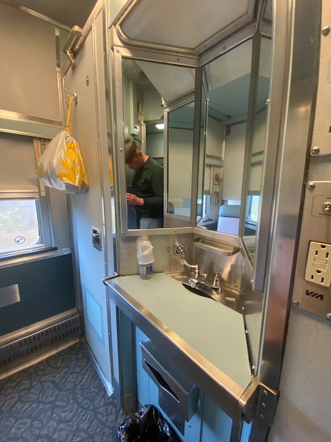 The roomettes are longitudinal, contrary to the European style transversal beds. The roomettes don’t have a bathroom but they have toilet under a seat. One of these will be my home on The Canadian.