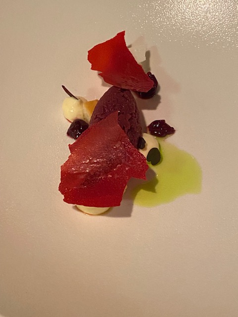 Steve and Philippe had beetroot millefeuille with umami beurre blanc instead of the cheese. It’s an item of the vegetarian menu.