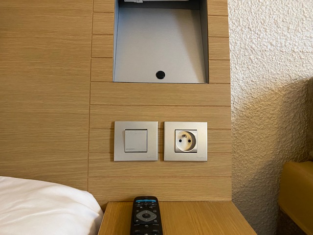 So. The room features a two-persons bed, a rotating desk, a sofa, enough power outlets. But why do hotels often only give one side of the bed a power outlet?