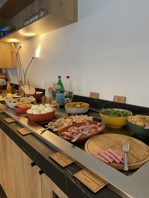 For a French hotel, breakfast offers a pretty decent variety of items. Bread, cold cuts, cheeses. On the subject of cheeses: in France I expect a better, quirkier assortment.