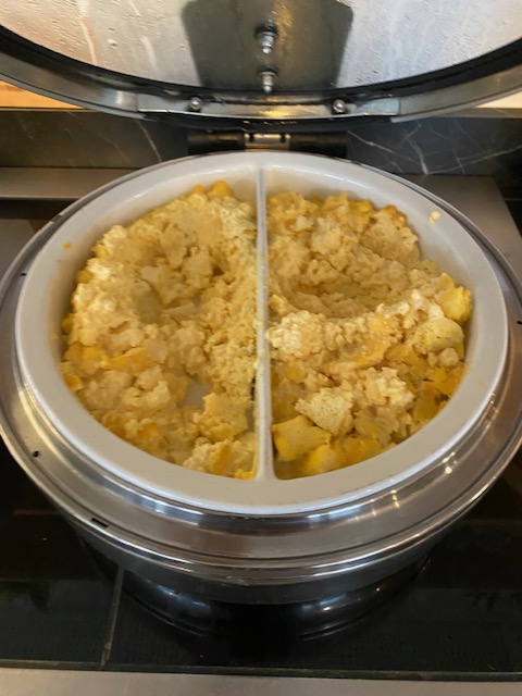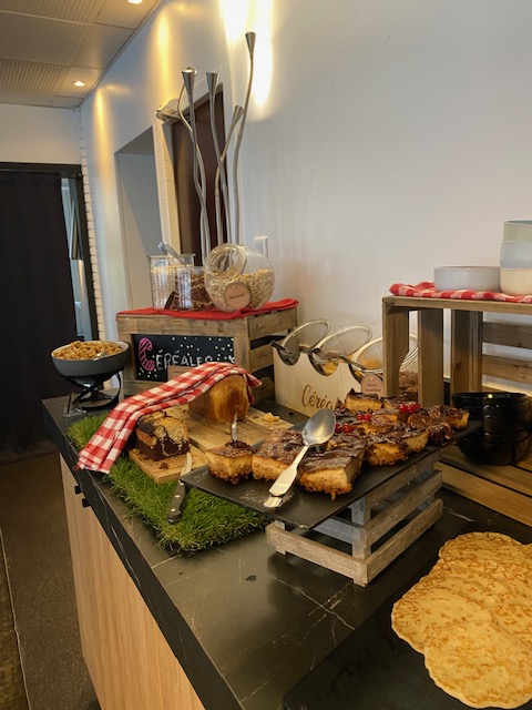 But you have al you’d expect: pastries, yoghurts (which were wrongly labeled), juices, sweet items, hot items, hot and cold drinks. Teas are served in pots. Everything is self service.