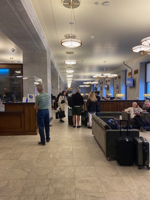 So. We presented ourselves at Toronto Unio Station over an hour in advance as required. We checked in at the business lounge and made our first lunch and dinner reservations. We had to check in our main luggage. You only have space for a carry-on or overnight bag in your sleeping quarters.