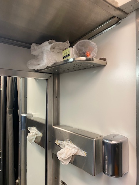 Economy and Sleeper Plus have one washroom per car. Prestige has both private washroom facilities and private showers.