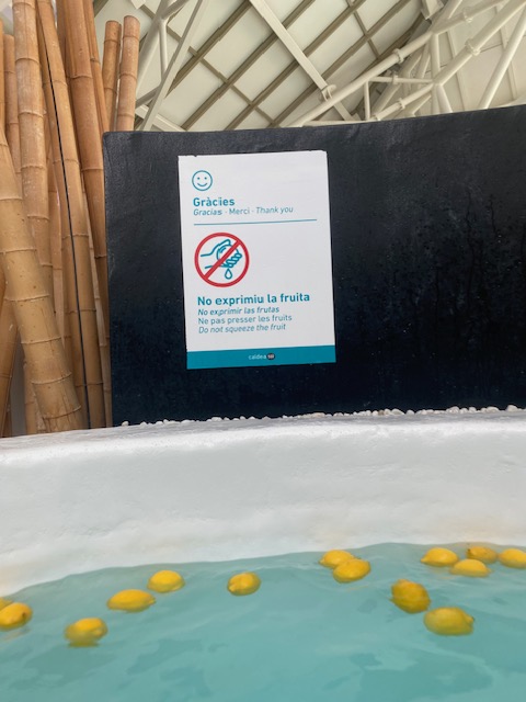 We expected few people but we were wrong. Caldea was crowded, even on a Monday Morning. Many elderly visitors from France, but also Castillian and Catalan speaking teens. Luckily Origins was calmer.