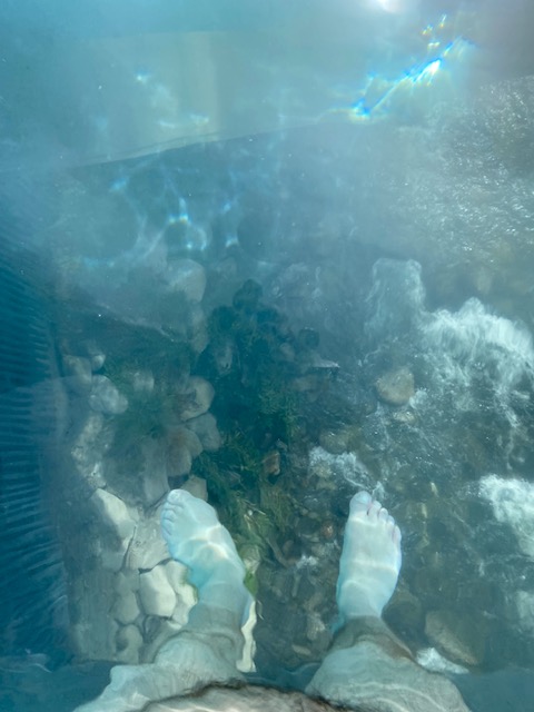 Origins is a bit quirky. Having grapefruit or lemons floating around is cute gimmick. Does it do anything? Not really. Is it photogenic? Yes. Bringing your phone is fine by the way. The little shop and towel dispensing area sells waterproof cases.