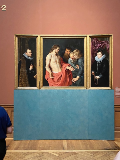 Throughout the year, visitors in the Rubens Gallery can catch a glimpse of the restoration of Rubens’ ‘Enthroned Madonna Adored by Saints‘. After scanning the canvas and cleaning the surface, a new phase will start in 2024: the removal of varnish. On the immense scaffolding, restorers get to work with solvents and cotton swabs. Various restorers take care of different areas simultaneously. A painstaking task that you can observe live.