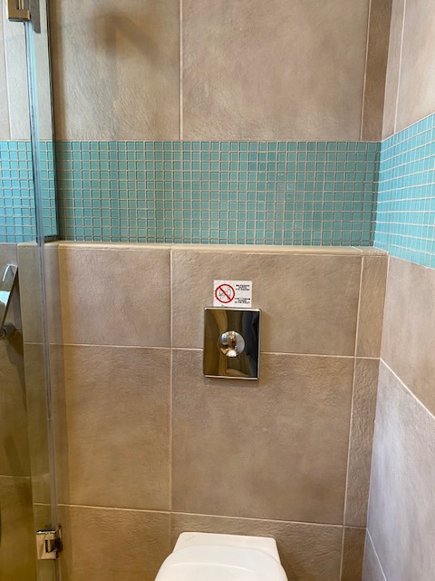 You’re not allowed to throw toilet paper in the toilet as it may clog the pipes. A very nice feature is a window. A rarity in (hotel) bathrooms.