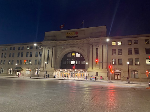 Winnipeg in Manitoba was a prime example. We were supposed to be there at 7.30 PM and have three hours which allows you to walk tp the city centre. Also because Winnipeg Union Station is not too far from the interesting parts of the city.