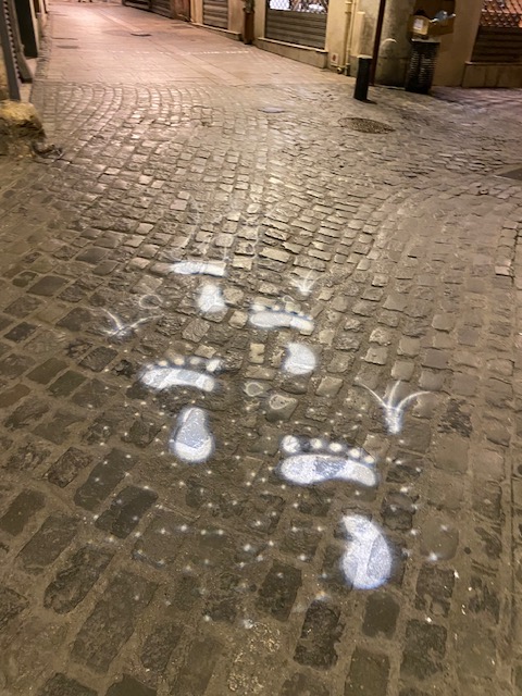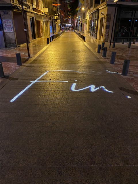 In the evening, some streets were cut off for Visa pour l’image pass holders. What happened there, is a mystery to us. But in other streets images were projected on the pavement.
