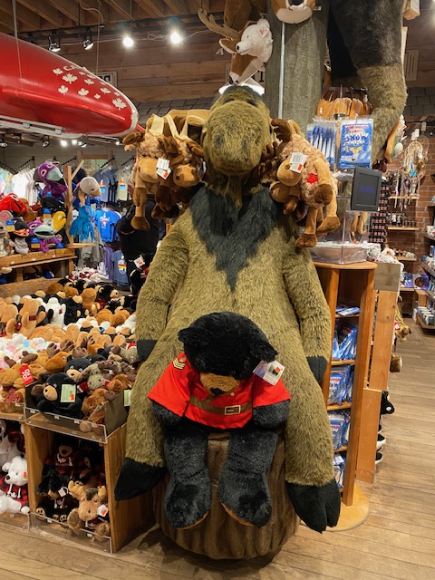 There are so many souvenir shops, and the maple leaf is on everything. Patriotism is huge in Canada, but not as effective as the marketing of Switzerland. Still, syrup and maple leaves everywhere.