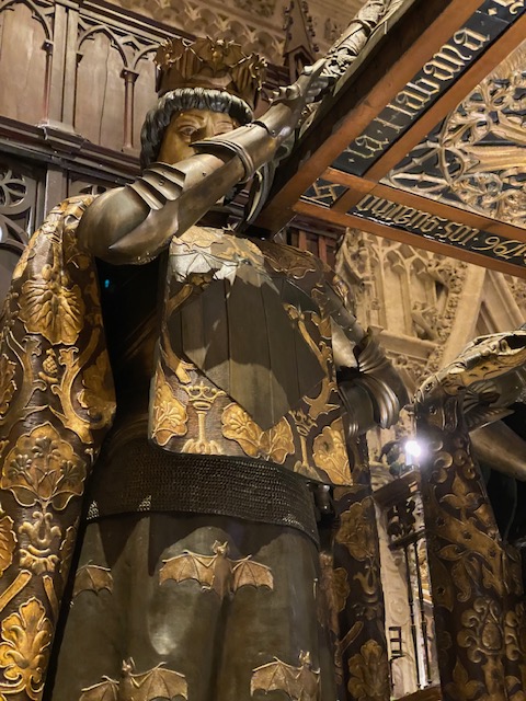 The tomb, a majestic monument with four heralds representing the four kingdoms of Spain, serves as a testament to the Age of Exploration and the connection between Seville and the New World.