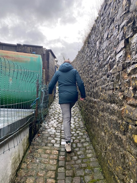 After a few uninspiring, lackluster streets – also not helped by the grey January weather – we encountered an actually quaint and photogenic area around the hill where there used to be a castle. Cobblestone streets, a cave, bridges. The tourism office even showcases a little 2.3 km trail.