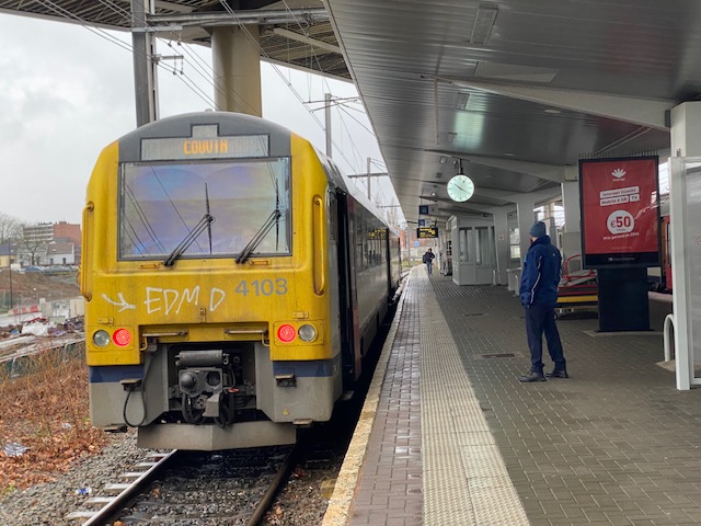 January 2024. Since December 2023, there’s a new intercity train service between Leuven (Louvain) and Charleroi-Central, with stops at Heverlee, Wavre (Waver), Ottignies, Court-Saint-Étienne (Sint-Stefaanshof) and Fleurus. Wanting to try this new link, we decided to first travel to Charleroi via Brussels, a classic itinerary. There we explored railway line 132 to Mariembourg and then railway line 134 to Couvin. We walked around Couvain and returned to Antwerp via Charleroi and Leuven. At least that was the plan.