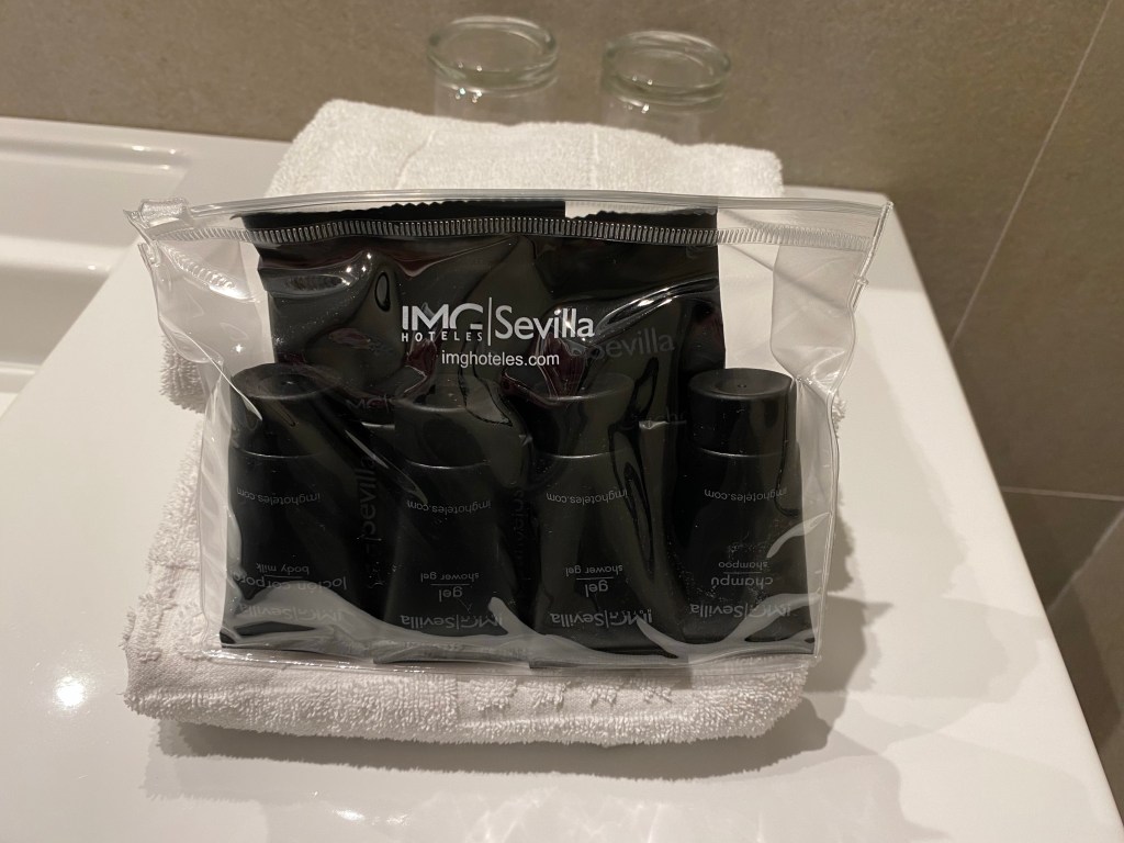 In the room there where coffee and tea facilities as well as two complimentary bottles of water. Later in the evening they knocked on the door to deliver a bottle of cava “to make us feel welcome at the hotel”, a very nice gesture.