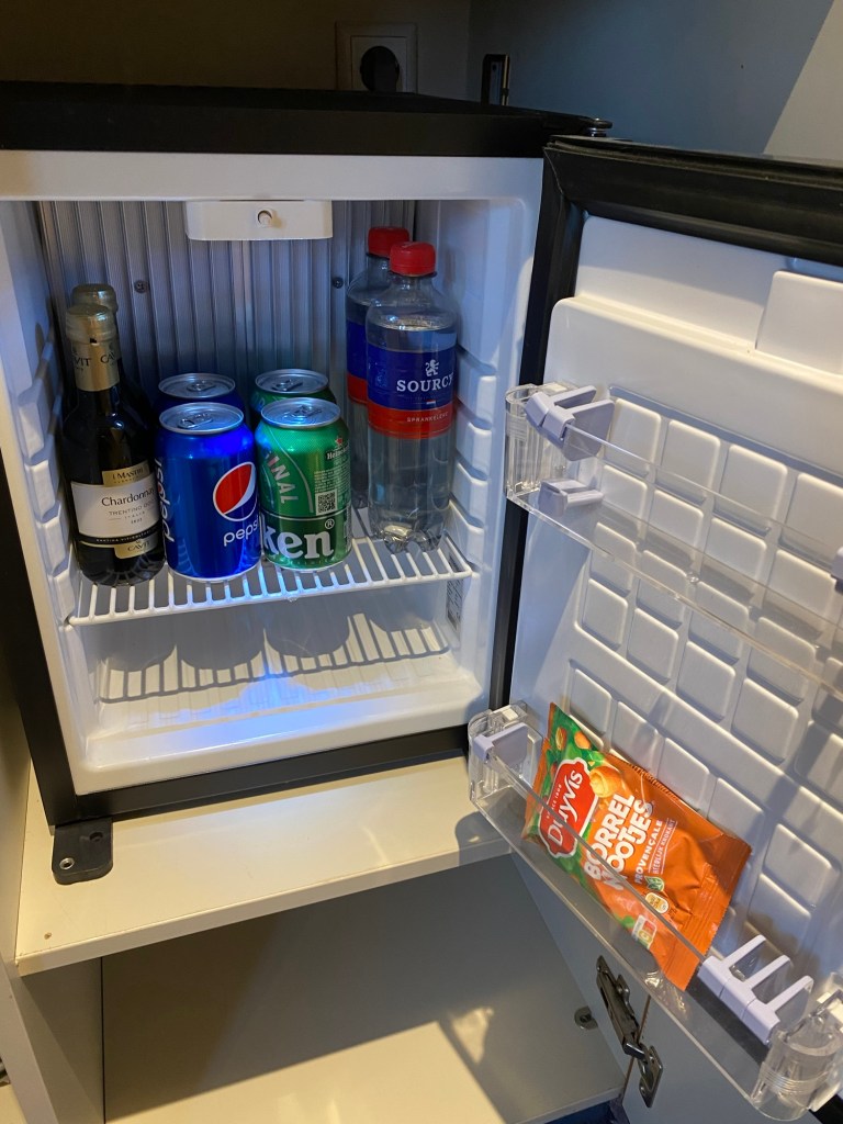 Next to the entrance you had the main wardrobe, here you had some slippers and bathrobes for each guest as well as the minibar stocked with 2 cans of coke, 2 cans of Heineken, 2 bottles of water and 2 bottles of wine (red and white). This minibar was included in the room rate of the Executive Room (just like the complete tour of the ship), which where deciding factors on booking the more expensive executive room (better value for money).