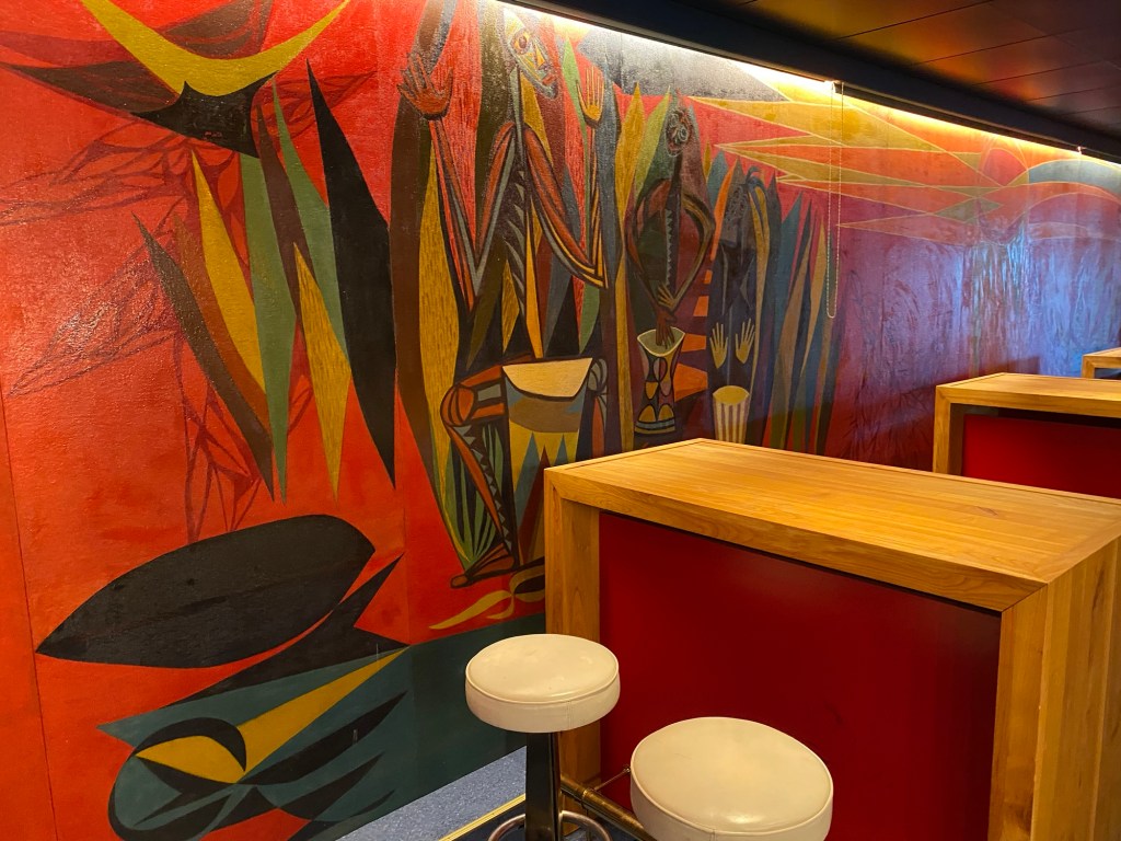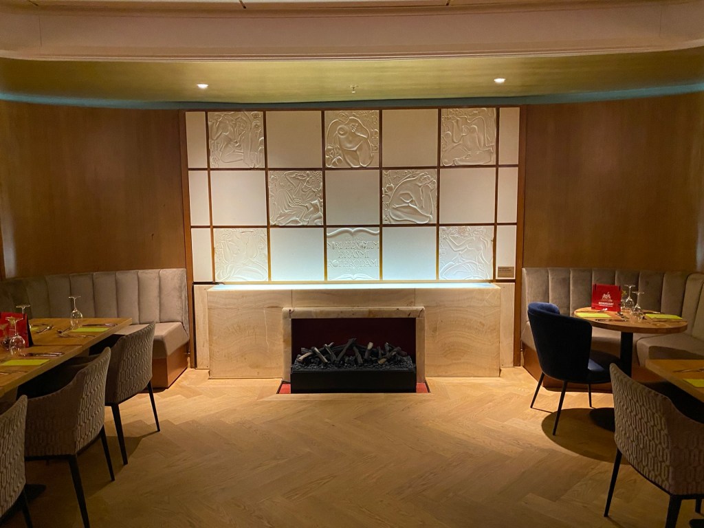 In the evening we had dinner reservations in the Club room, the upscale dining restaurant on the ship. This was still in the original 1959 styling and featured some nice art works as well as an open fire. As we were there on a Thursday night no one else had reserved so we were the only one in the restaurant all evening. However service was never rushed and very personalised.