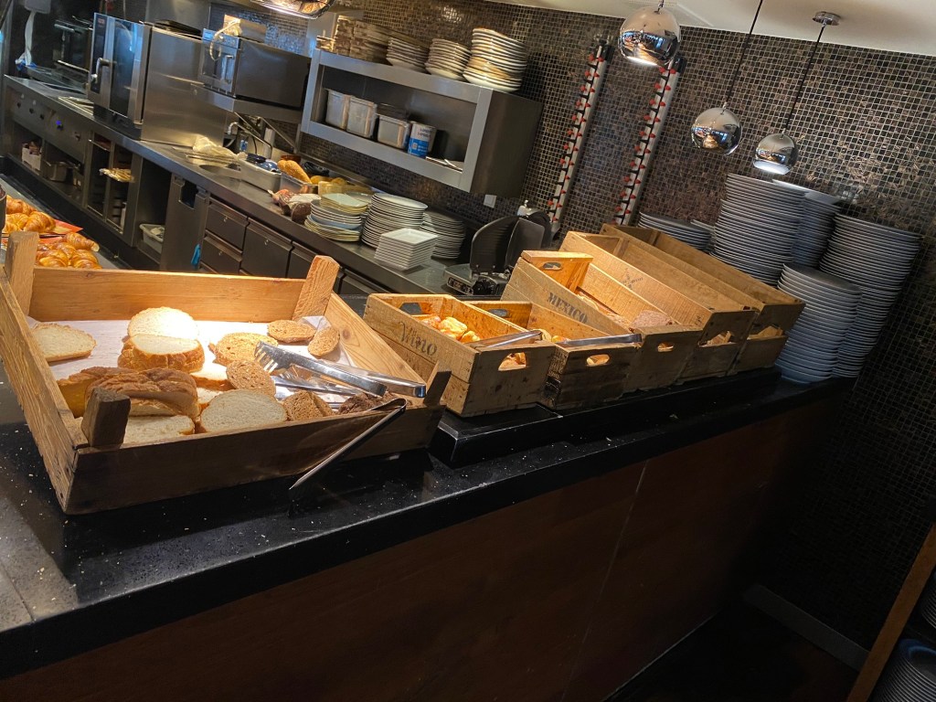 After a nice night’s sleep we had some breakfast in the Lido Restaurant. Upon check-in you had to choose between one of 2 breakfast shifts, either 7 to 10 or 10 to 11. As we had a late night with food and drinks the night before we opted for the late shift from 10 to 11. This was the busiest we would see the ship as the restaurant was more than half full when we entered. The breakfast was organised in a typical buffet style. There was a corner where you could get several types of juices, tea and coffee. At the other side was the food area where there were some hot options, breads and cold cuts. If you wished you could have eggs made to order.
