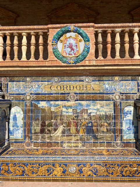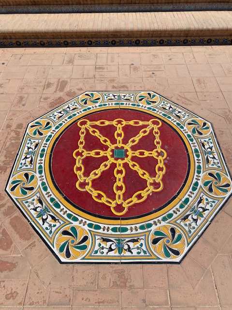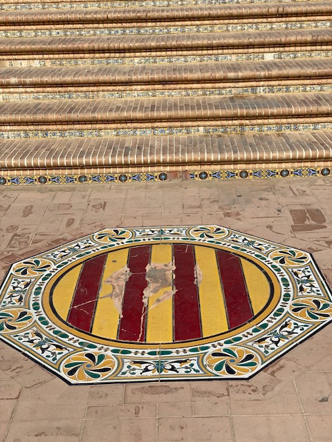 - Ceramic tiles. One of the most striking aspects of the Plaza de España is the extensive use of ceramic tiles, which depict scenes and symbols representing different regions, cities and historical periods of Spain. These decorative tiles are arranged in a series of alcoves, each corresponding to a different province of Spain.