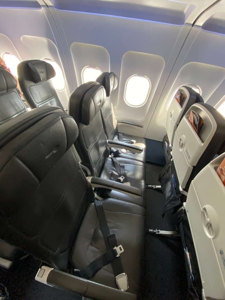 The British Airways A320 cabin is a rather standard 3-3 configuration from front to back. The difference between Business and Economy being a curtain that divides the two classes and an empty middle seat in Business. On today’s flight there was a lot of business as it stretched all the way to row 10, almost half of the plane.