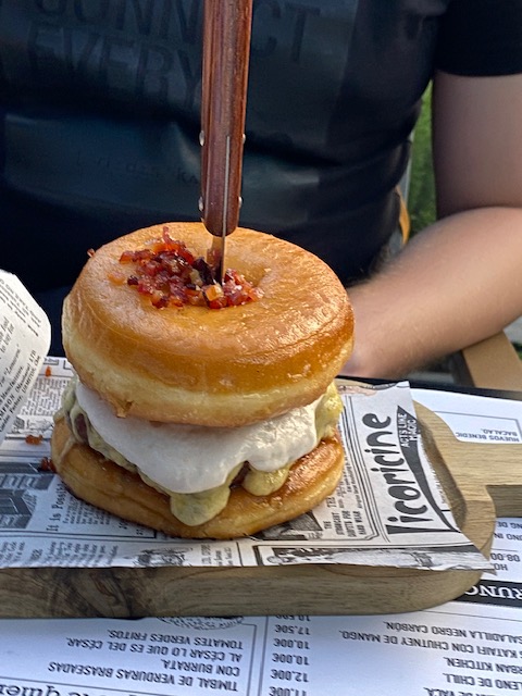Afterwards we had burgers at La Casual by Negro Carbón on Plaza de Isabel La Católica. Danny had ‘La Hommer’ or ‘Homer Would Love It’. A double glazed doughnut, a 200 gram matured cow patty, maduradi bacon and mayo bacon sauce.
