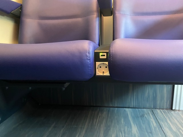 First class is pretty similar, but with 2+1 seats or seats facing each other. And you get one socket and USB-A port per one seat. The seats are read a more comfortable. You can recline them.