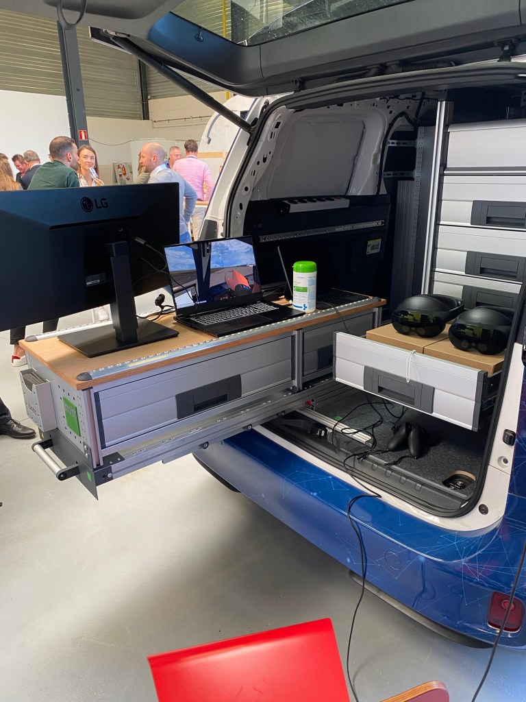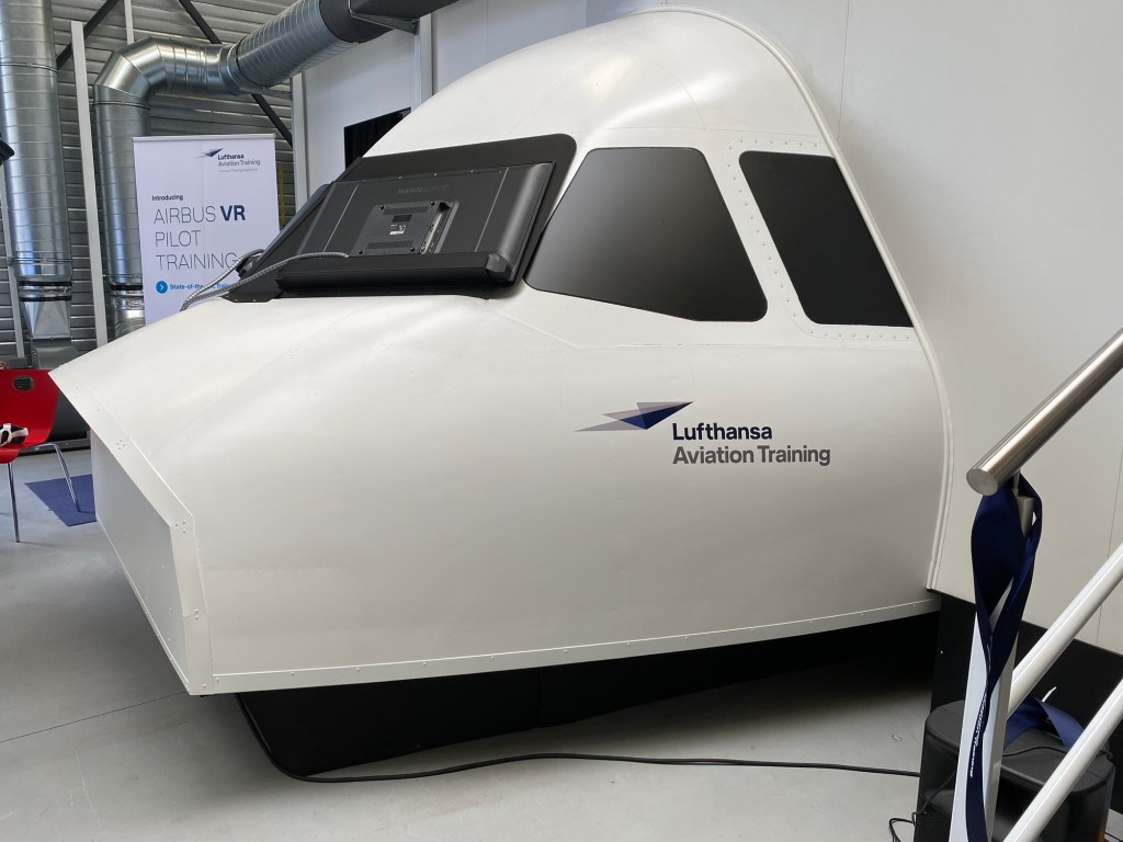 One of the highlights of the day was the electric van at the entrance. Here they demonstrated the new VR training Lufthansa Aviation Training developed in cooperation with Airbus. Using either a 2D format on a tablet or a very realistic 3D format using a Meta VR headset they will be using this as a base training for pilots getting their type certification after their basic flight training.