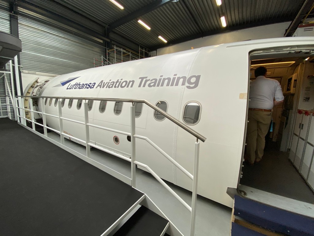 If you where expecting big moving cockpit simulators you won’t find them on this new site as the training centre is mainly focused on cabin crew and safety trainings, pilot training in the moving simulators is still elsewhere. Also the ditching training will still take place at a public pool, the only training centre with its own pool is the one in Frankfurt.