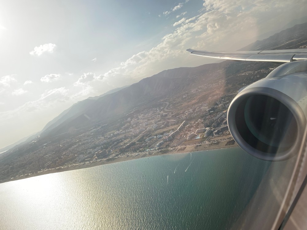 The engine had a deep whale sound when spooling up for departure and where noticeably quieter than the older generation engines found on other aircraft. The climb out provided us with a last scenic view over the coast of the Costa del Sol and the beautiful beaches before tuning north over the Mediterranean Sea to fly us to Belgium.