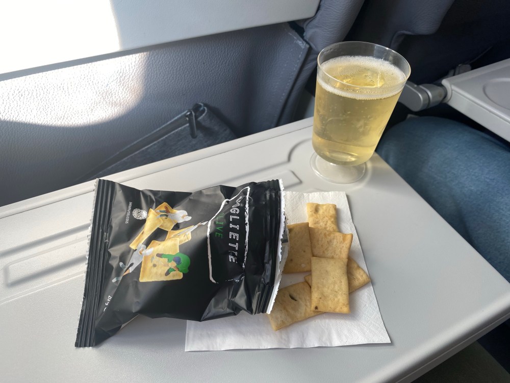 Fly Deluxe gives you the option of reserving seats in advance, and while I did that the site did give me an error message end apparently the reservation didn’t go through, causing us to receive separate seats. The main reason we booked Fly Deluxe was that we would be bringing a bag to check, and the difference between just the price of the bag and the full Fly Deluxe package wasn’t exorbitant so we just chose the option to pamper ourselves.