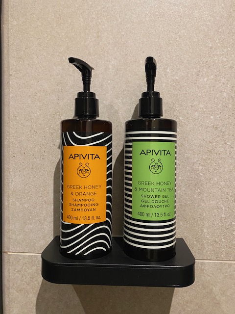 Shampoo and soap are by Apivita. It’s not a made-up brand for hotels, as it’s also available in retail.