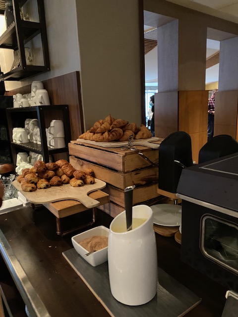 Breakfast was not included in our fare. On Saturday, we gave it a go. What’s on offer? Your typical hot English breakfast options, cold cuts and cheeses, yoghurts, cereals, bread and bread rolls, pains au chocolats and croissants, juices, water, salad bar items and coffee and tea. I didn’t see a hot chocolate option, which makes my inner child sad.