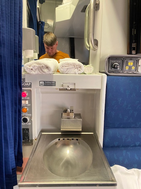 On day two, I went for a shower. The shower in our car didn’t seem to work. Or, I couldn’t figure it out. I struggled in the other sleeping car as well, until I figured out how to operate the shower.
