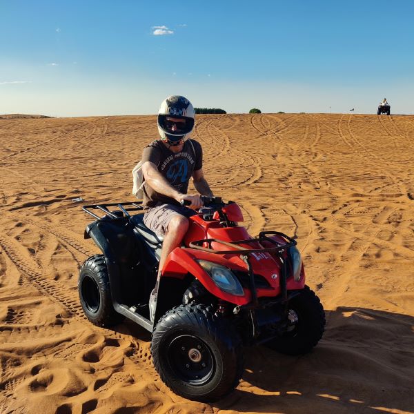 I had the choice to book a quad to drive around in the full desert or to stick to a big fenced terrain. Know your driving skills: so I wisely chose the last. I must say: it’s a sensation to drive on a quad through the desert hills.