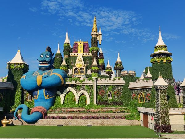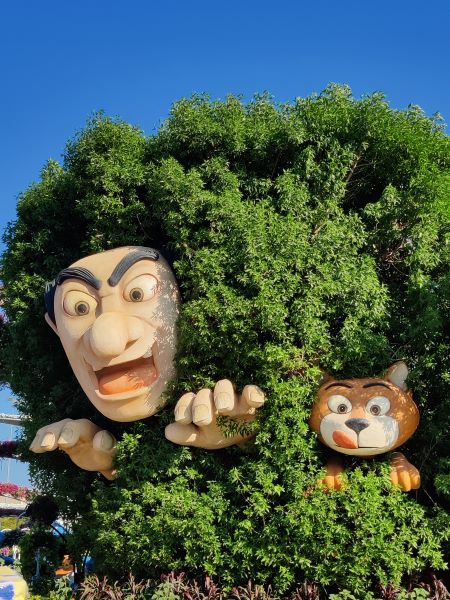 They have a Smurfs Village, a floral clock, an Indian Temple covered with flowers, gigantic horse heads and penguins made of bushes, a floral airplane and much more. It doesn’t make sense, kitsch at its best.