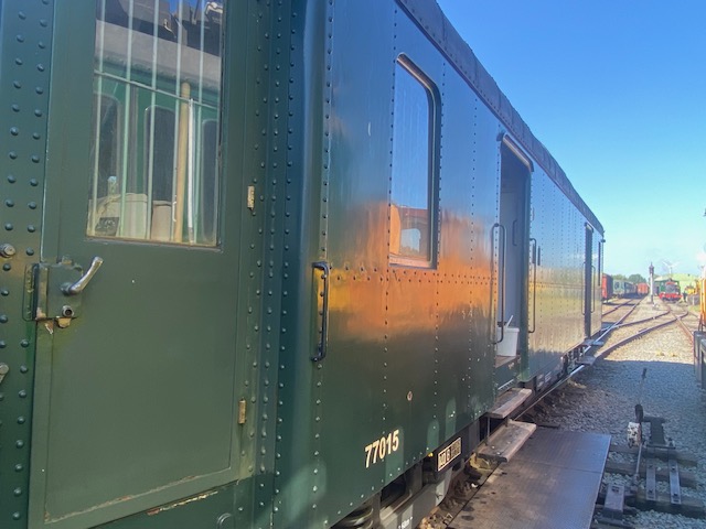 - A smaller, narrower 1940s ferry wagon. Built to be used on ferries to the United Kingdom, it was now used to ferry a diesel generator to provide electricity to the carriages.